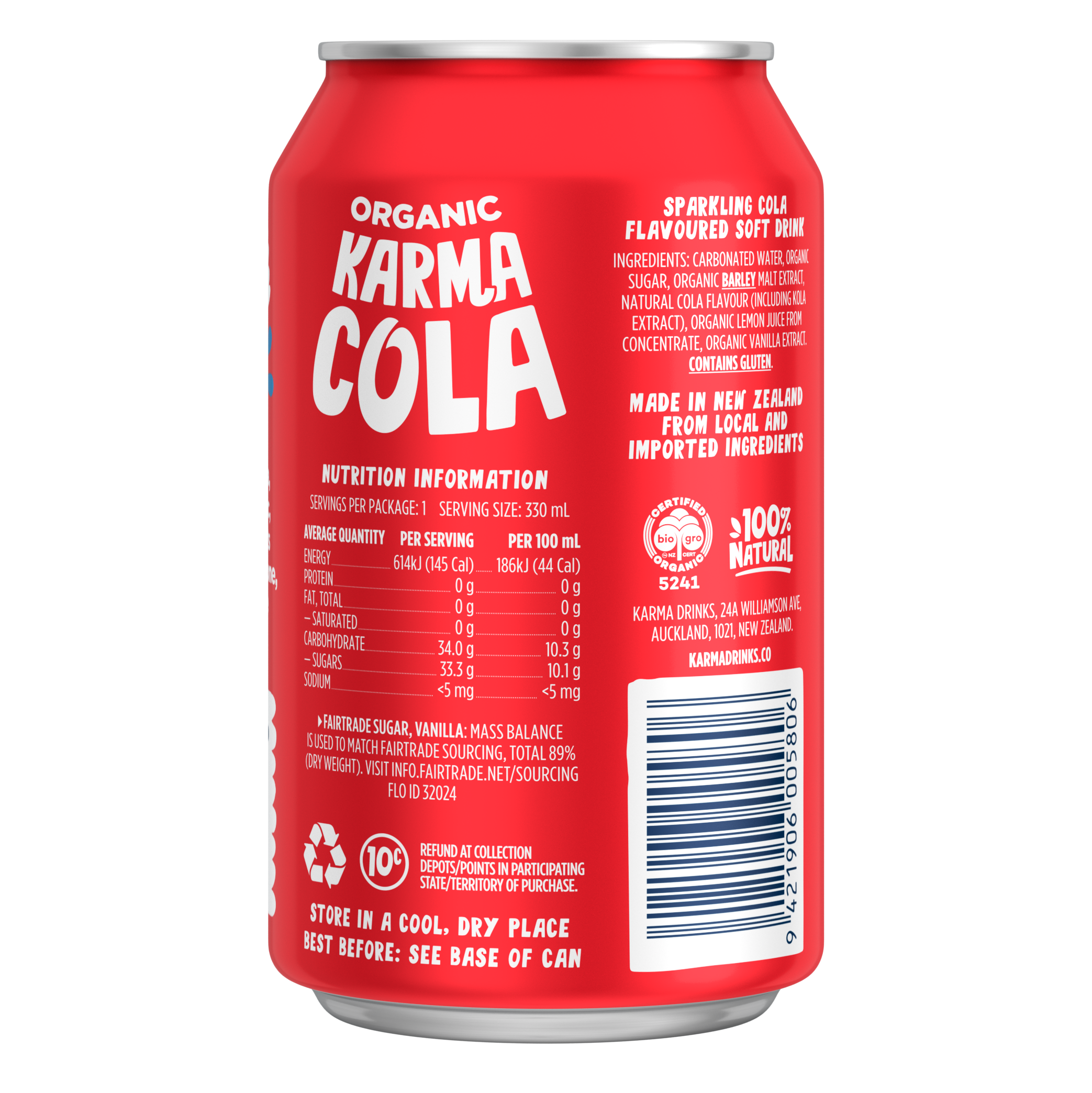 The most delicious refreshing, organic, Fairtrade Cola. Unlike other colas, Karma Cola is made with real Kola nuts from Sierra Leone and is 100% natural.